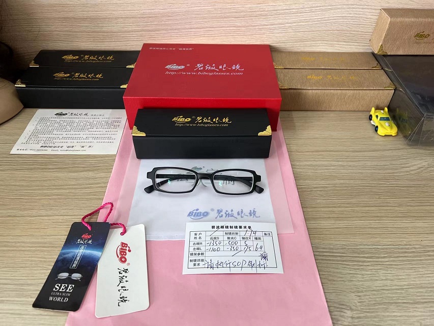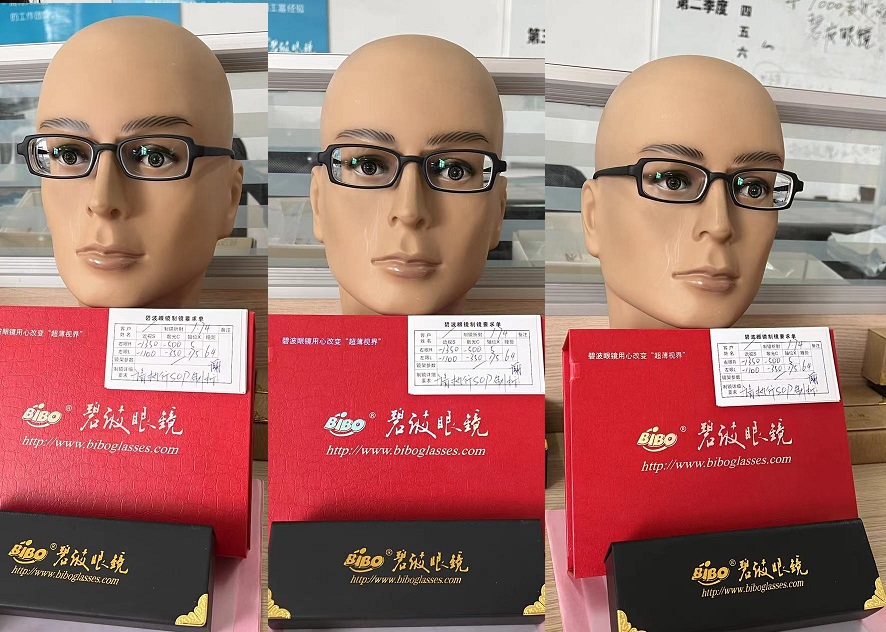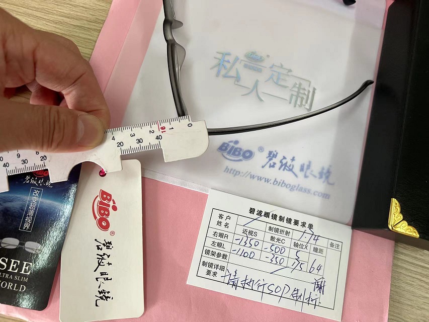 碧波技术部团队同仁在结合以往的制镜案例以及参考大数据库分析评估后(之前有新疆帅哥老用户近视眼1550度联合散光500度案例、湖北美女老用户1100度联合散光400度、四川老用户近视眼1800度联合散光300度、海南老用户近视眼2000度联合散光350度、湖南帅哥老用户近视眼2300度联合散光200度案例等等……很多很多类似屈光度案例,在此就不一一枚举),并再三复核、模拟演算,最终做出了相对可行的且较详细的制镜方案,同时经过碧波高度近视超薄眼镜制镜标准SOP作业+充足的制镜周期保障后,成镜完成的“超薄+美观+超轻”特色效果还是相当不错的。该父亲用户在收到超薄眼镜后,当即就发来的《用户满意度好评反馈》,一句“轻薄舒适,戴上很满意”,让我们倍感欣慰和自豪! (附图)